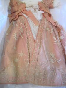 Jane inherited sheet music annotated by her aunt, Lady Mary Singleton. This and other personal objects were part of her and her children’s domestic life. We all loved other items of female skill, such as the boy’s small red coat and the exquisitely sewn child’s dress in coral silk and lace, both of which are carefully preserved and rarely shown in public. A set of small watercolours, painted on ready-made card mounts were probably made by Jane’s daughters, Mirabel Jane (1821-1900) or Louisa Anne (1822-89), both of whom were talented artists but as with so much feminine production they did not leave a signature. But other objects such as paintings from family homes which were part of Jane’s Cornwallis family inheritance are hidden as such among the displays in the house and have no connection with Audley End. When an inventory was made in 1946 by the Ministry of Works after the house was acquired for the nation, much of the history of the family through marriage was lost. Female inheritance and provenance was absorbed into the default male story attached to the house.