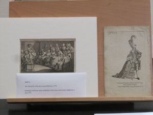 Paul gave a short talk on the life of the Chevalier. He included explanations of the different print techniques used, e.g. stipple and intaglio, and mentioned the various sources of the prints, including contemporary scandal sheets. The Chevalier had been a soldier, diplomat and spy for Louis XV, and was famously a cross-dresser, living from 1786 as a woman. To complement D’Eon’s story, Paul had also looked out what the archive held on Hannah Snell (1723-92), a woman who had passed for a man to serve as a soldier and sailor; one print portrait of Snell was probably taken from a real-life sitting, and certainly her resourceful character was evident. After the talk, we had time to look more closely at the individual prints and ask questions.